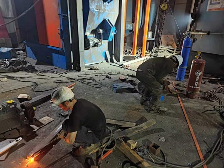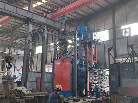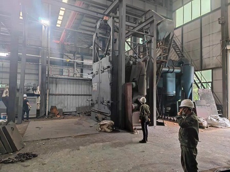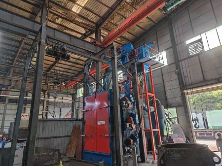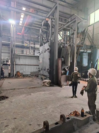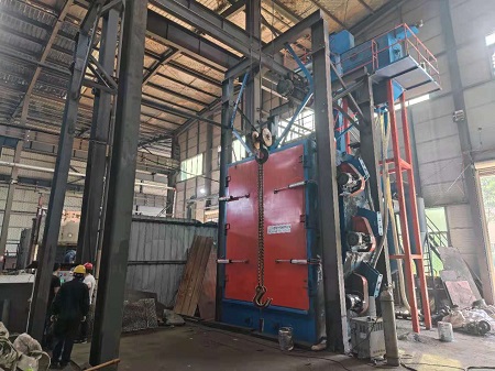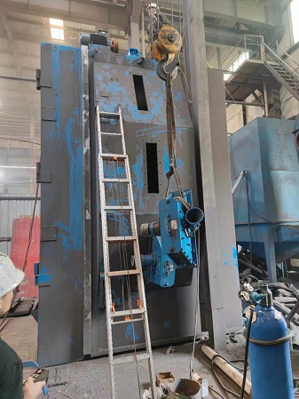衡陽某鑄造公司的吊鉤式拋丸機(jī)已使用多年,設(shè)備老化嚴(yán)重,效率低下,拋丸的效果較差。 隨著市場對產(chǎn)品的產(chǎn)量及質(zhì)量要求越來越高,而該吊鉤式拋丸機(jī)已經(jīng)是力不從心。受該公司委托,格蘭肯公司對該吊鉤式拋丸機(jī)進(jìn)行提質(zhì)改造。