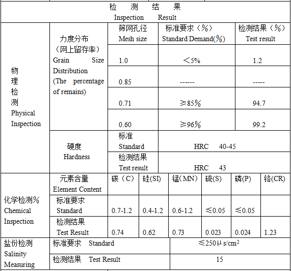 高鉻合金鋼丸采用優(yōu)質(zhì)軸承鋼作為原材料。軸承鋼具有良好的耐磨性,硬度,強(qiáng)度,彈性極限。鉻能增加鋼中奧氏體的穩(wěn)定性, 提高鋼的淬透性。所以軸承鋼砂從化學(xué)成分,合適的熱處理工藝可以確保其具有足夠的硬度和韌性,這些優(yōu)良特性是普通鋼砂無法比擬的,屬于優(yōu)質(zhì)綠色環(huán)保產(chǎn)品。