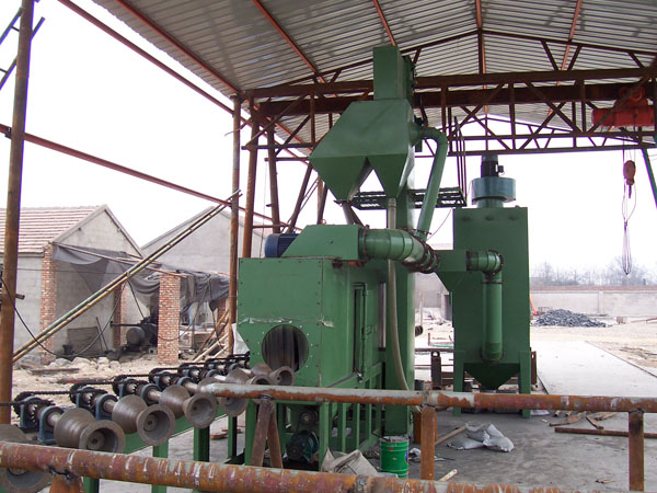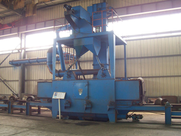 該機(jī)主要利用高效強(qiáng)力拋丸器拋出的高速丸流,拋打位于室體內(nèi)的旋轉(zhuǎn)工件表面,去掉其它的粘砂、銹層、焊渣、氧化皮及其雜物,使之獲得精細(xì)的光潔表面。提高了漆膜與鋼材表面的附著力,并提高鋼材的抗疲勞強(qiáng)度和抗腐蝕能力,改善了鋼材的內(nèi)在質(zhì)量,延長(zhǎng)其使用壽命。