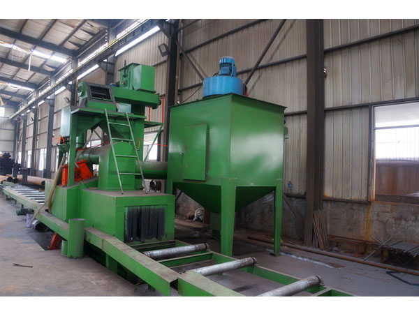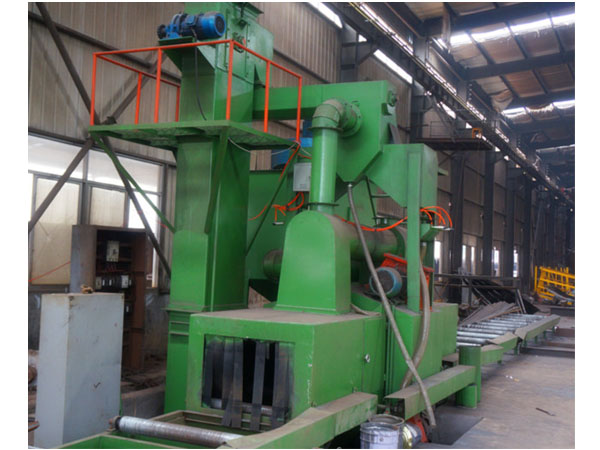 本機(jī)主要由室體、轉(zhuǎn)臺、螺旋輸送器、分離器、提升機(jī)、輸丸裝置、拋丸器、除塵系統(tǒng)等部分組成了一個結(jié)構(gòu)簡單、緊湊的轉(zhuǎn)臺式清理機(jī),在室體頂部設(shè)有兩個高速旋轉(zhuǎn)的拋丸器,將彈丸以高速度拋出打擊在轉(zhuǎn)臺上回轉(zhuǎn)的工件。當(dāng)被打件轉(zhuǎn)出室體時可以直接看到清理效果,同時更換新的工件。
